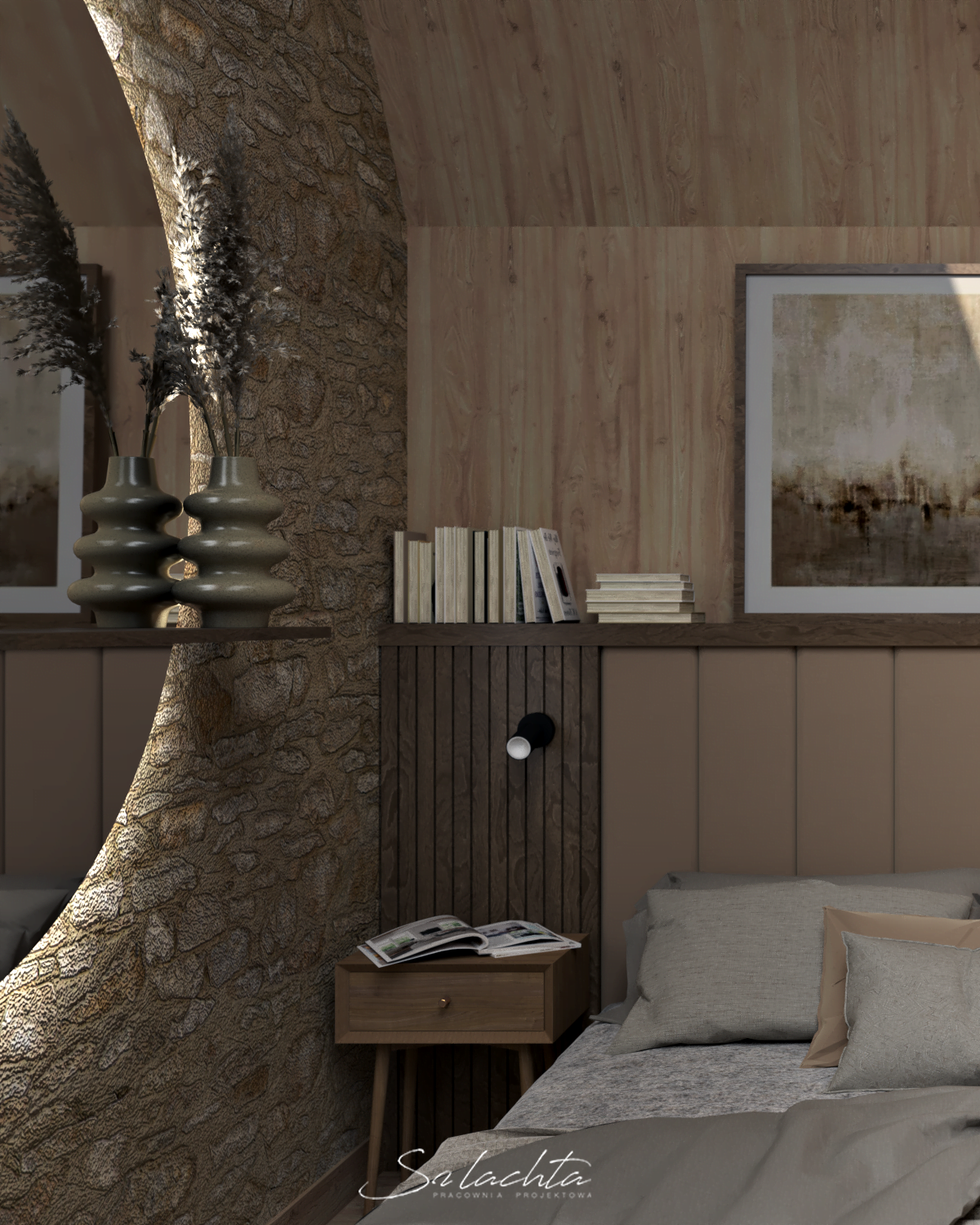 W części nocnej znajduje się sypialnia. Sypialnia jest przestronna i wygodna, zapewnia komfortowy wypoczynek.