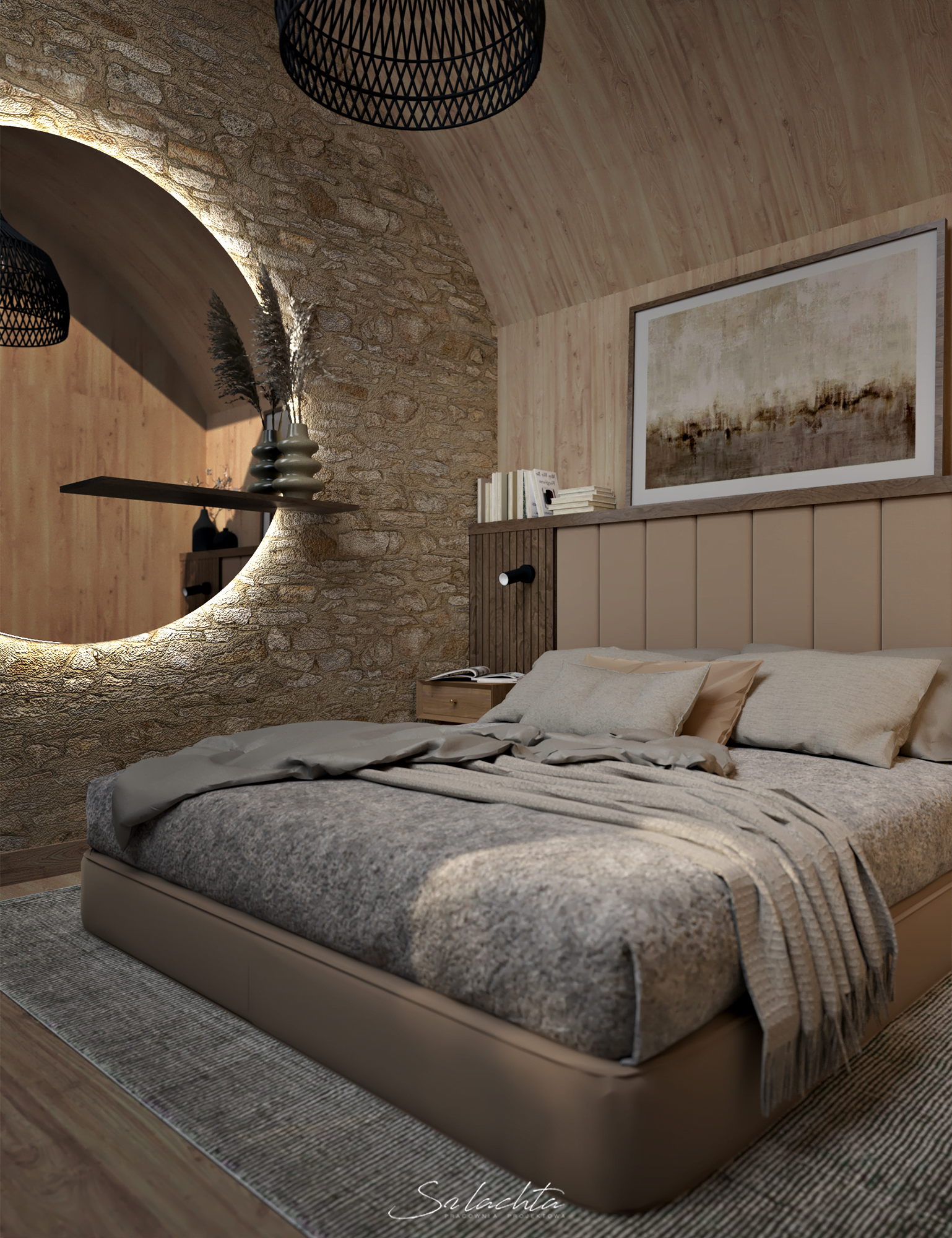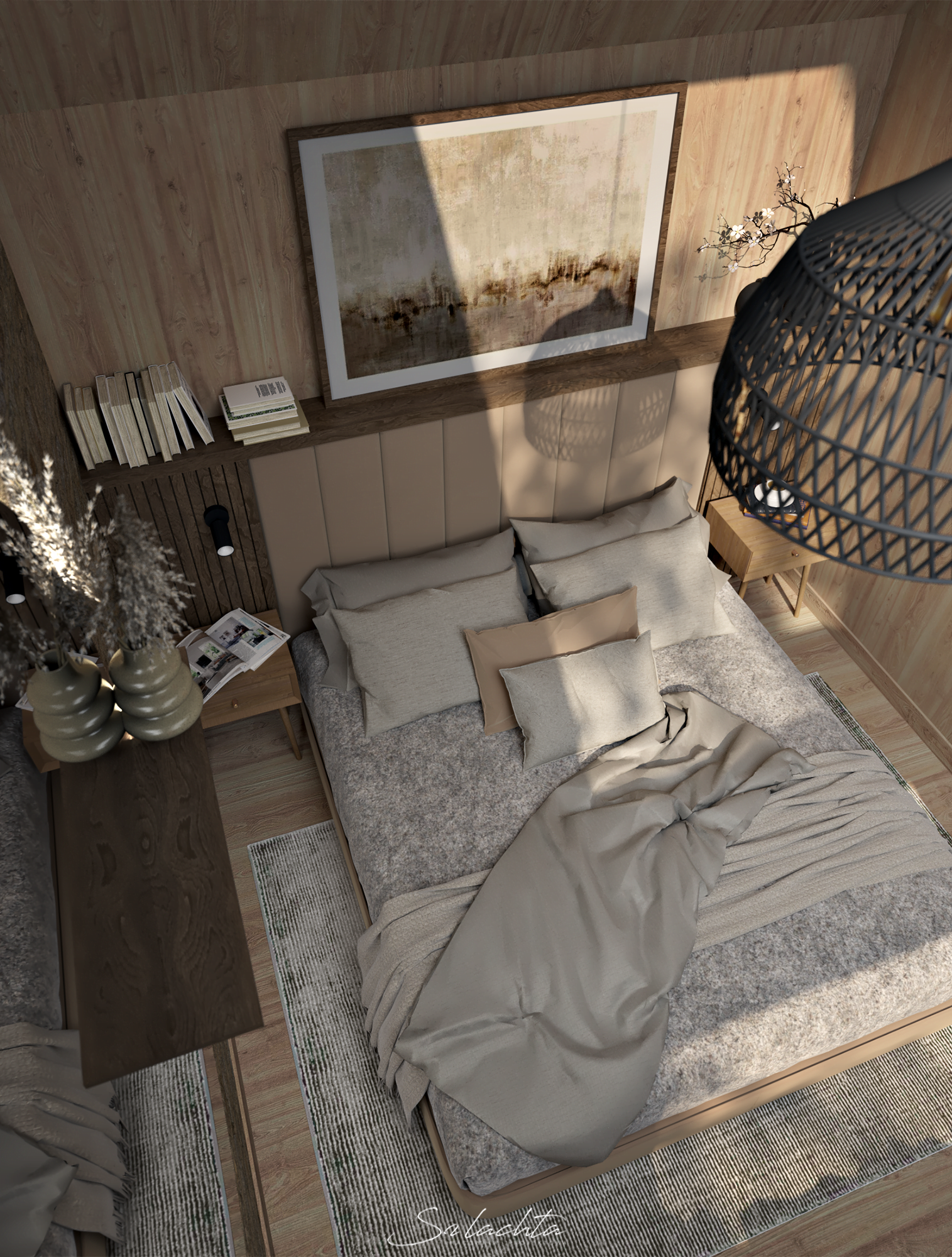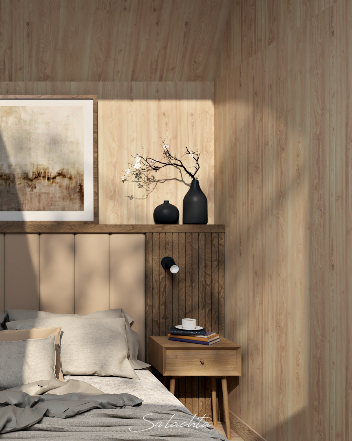 In the night area, there is a bedroom. The bedroom is spacious and comfortable, providing a comfortable sleep.