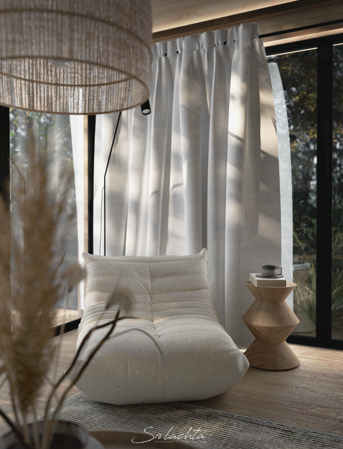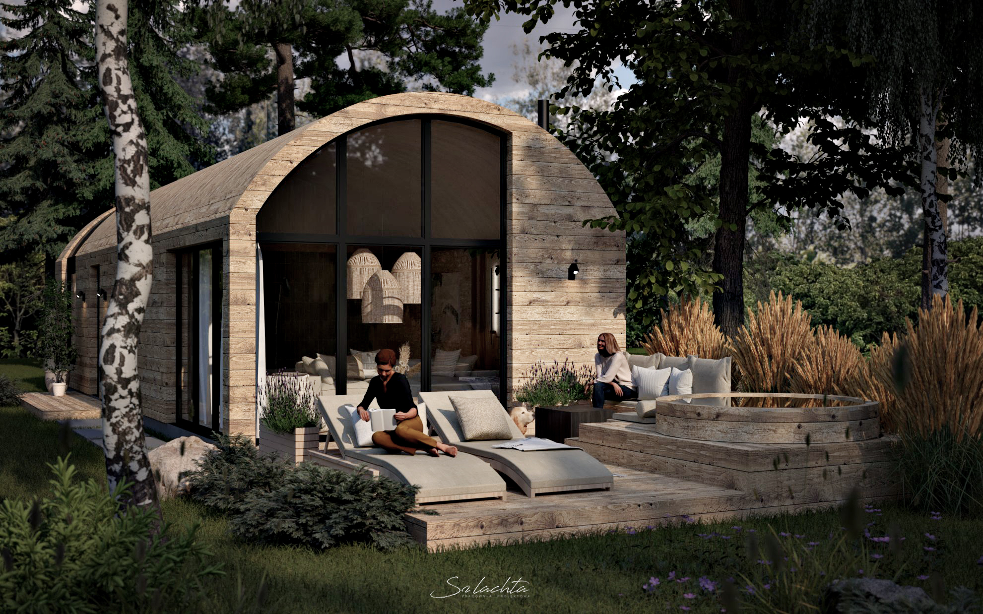 Domek rekreacyjny o powierzchni 45 m² to idealne miejsce na wypoczynek w malowniczej okolicy Uliny, w gminie Wicko. Dom jest zaprojektowany w nowoczesnym stylu i wykonany z naturalnych materiałów, dzięki czemu jest przyjazny dla środowiska i zapewnia komfortowy pobyt.