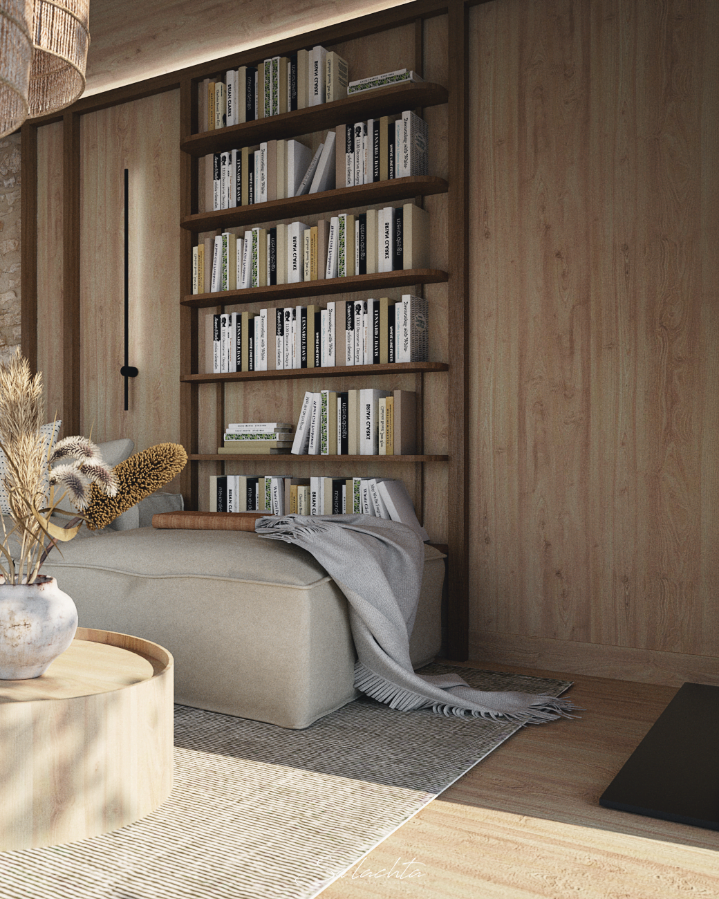 The cottage's exterior is made of brown wooden planks. This gives the cottage an elegant and stylish look.