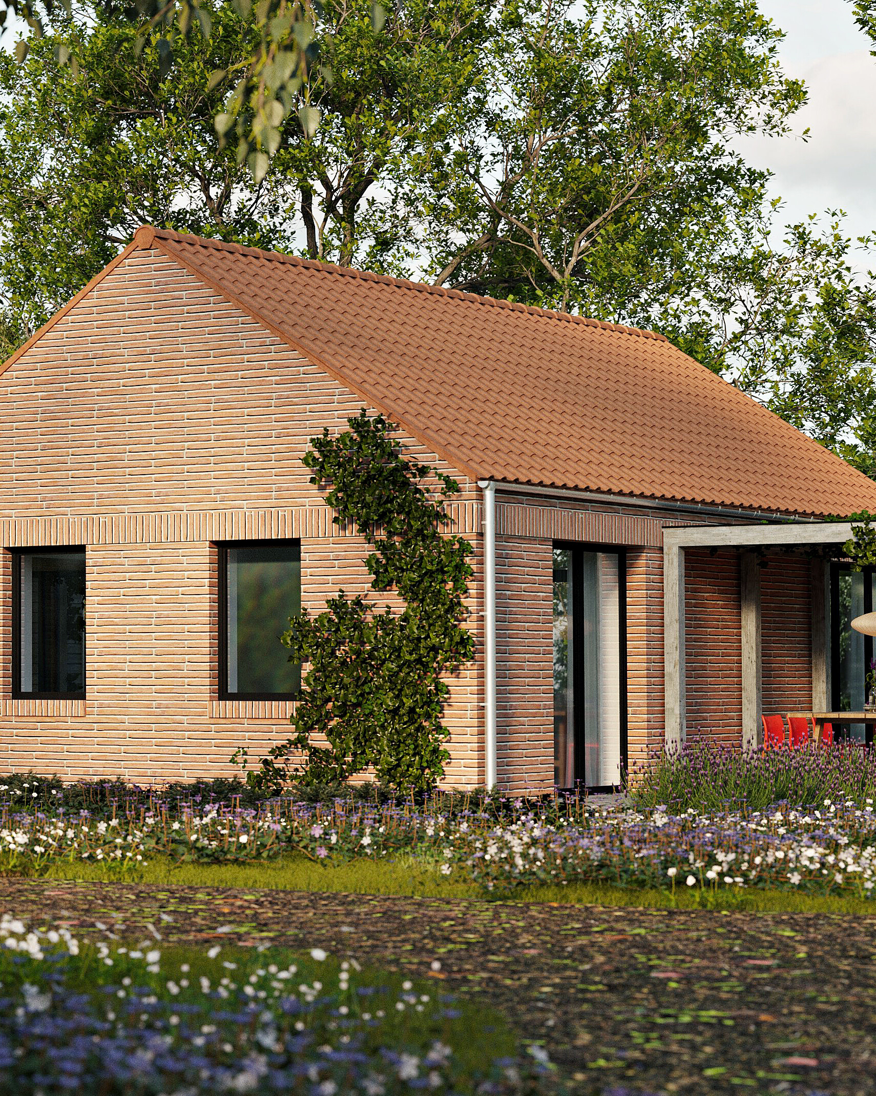 The house blends harmoniously into the picturesque Masurian landscape, combining traditional character with modern design through the use of natural materials such as wood and brick, along with a minimalist form that highlights the beauty of the surrounding nature. We present a single-family house project in a homestead layout, ideal for those who appreciate peace and living in harmony with nature.