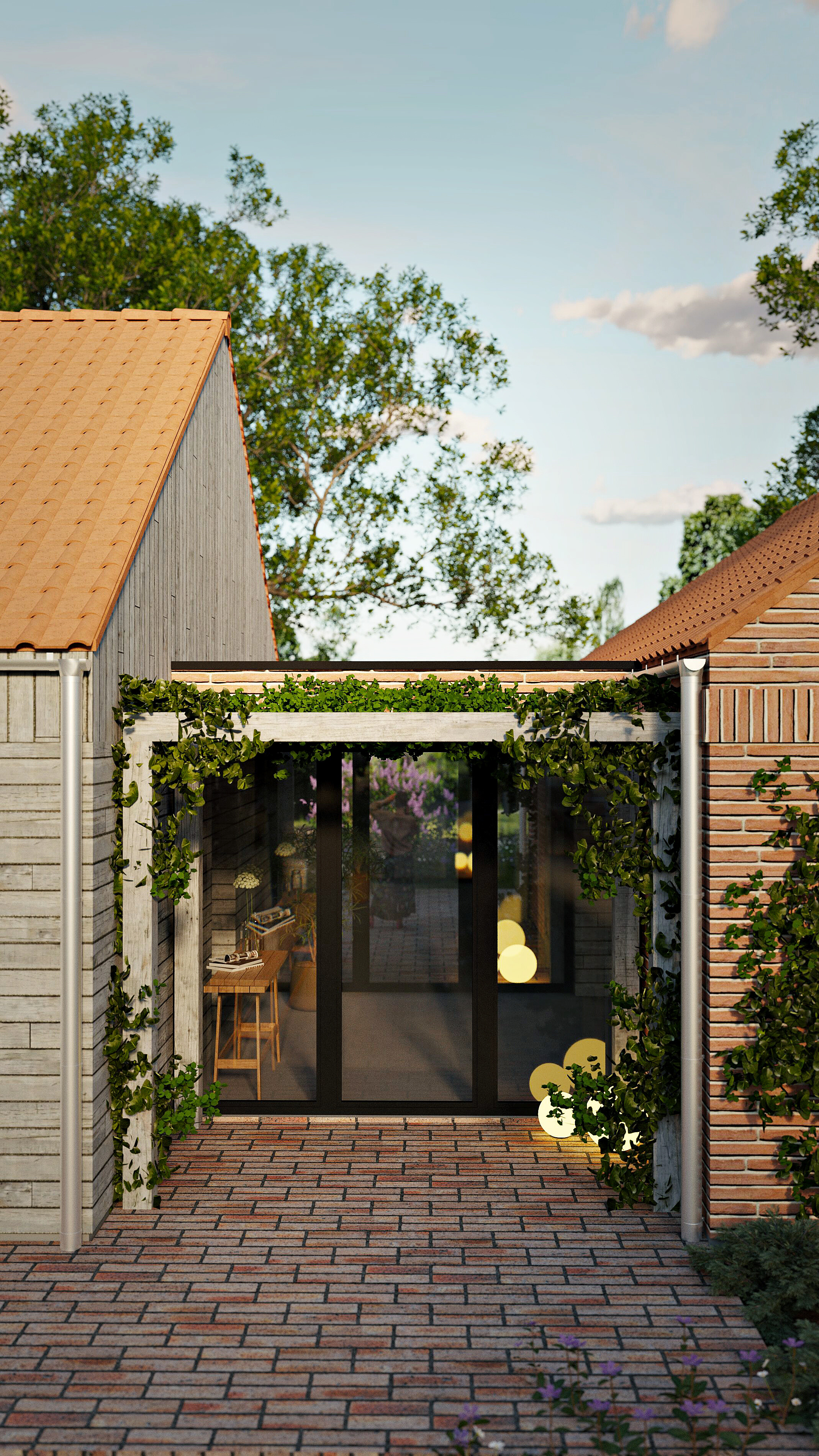 Glazed Link:This feature not only connects the two structures but also serves as an additional space that can function as a winter garden or relaxation area. The glazing ensures constant contact with the surrounding nature and provides optimal light and airflow.